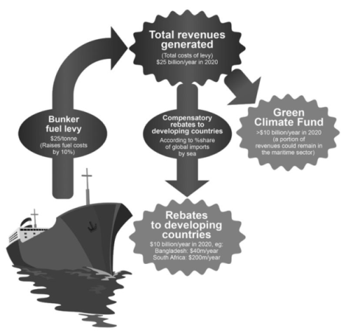 2. No net costs for developing countries: Because shipping emissions cannot practically be attributed to individual countries, a carbon price for ships must be universal. But to ensure that it is fully consistent with the CBDR principle, such a scheme must guarantee that there are no net costs for developing countries. Part of the revenues generated should therefore be used to provide rebates to developing countries to compensate for the impacts on their economies.